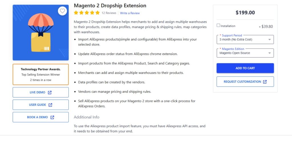 Magento 2 Dropship Extension by WebkulStore is a shipping extension for Magento 2. This extension allows users to allocate warehouses to their products.